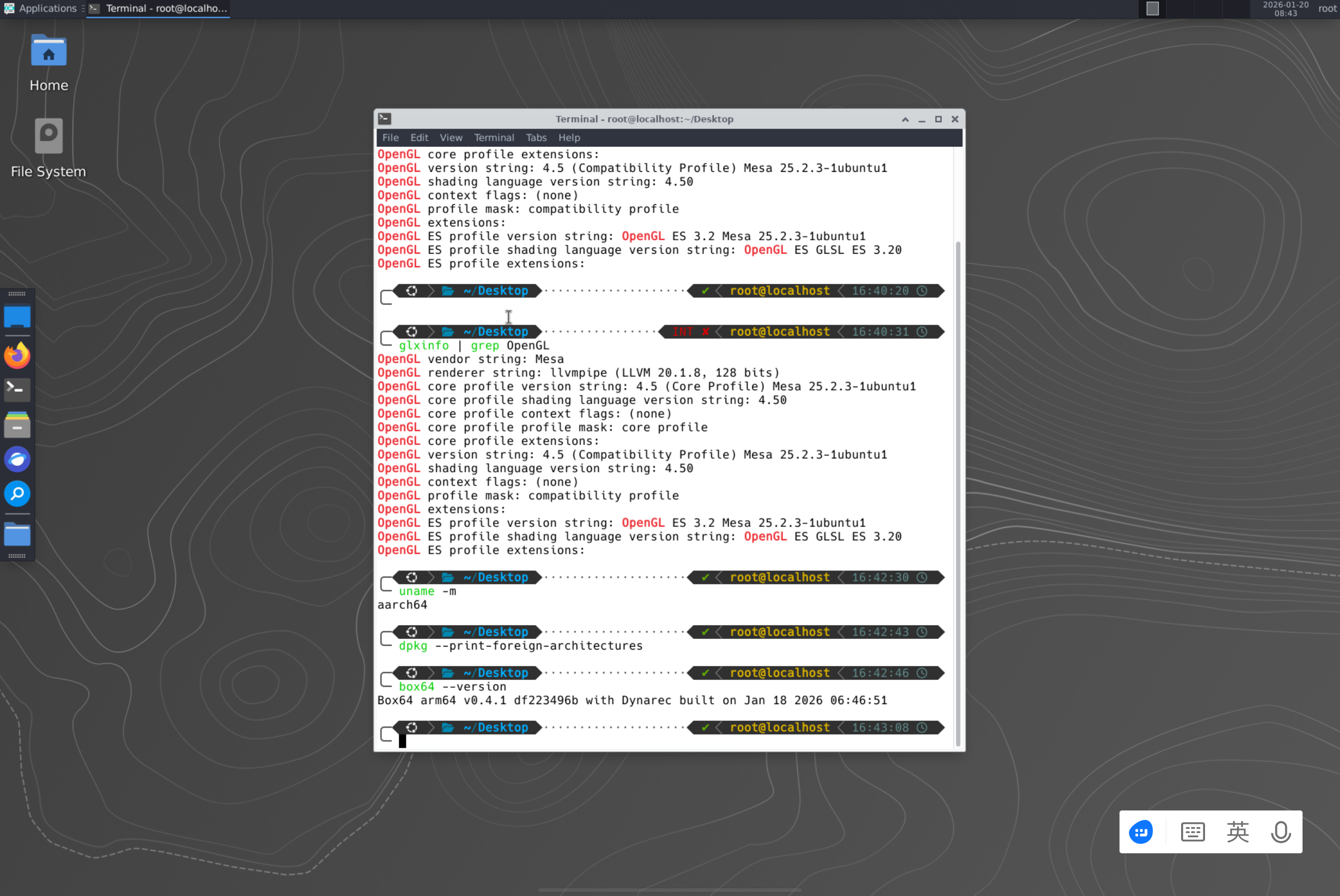 基本环境配置完成,可以打开桌面环境并在桌面环境中运行终端。