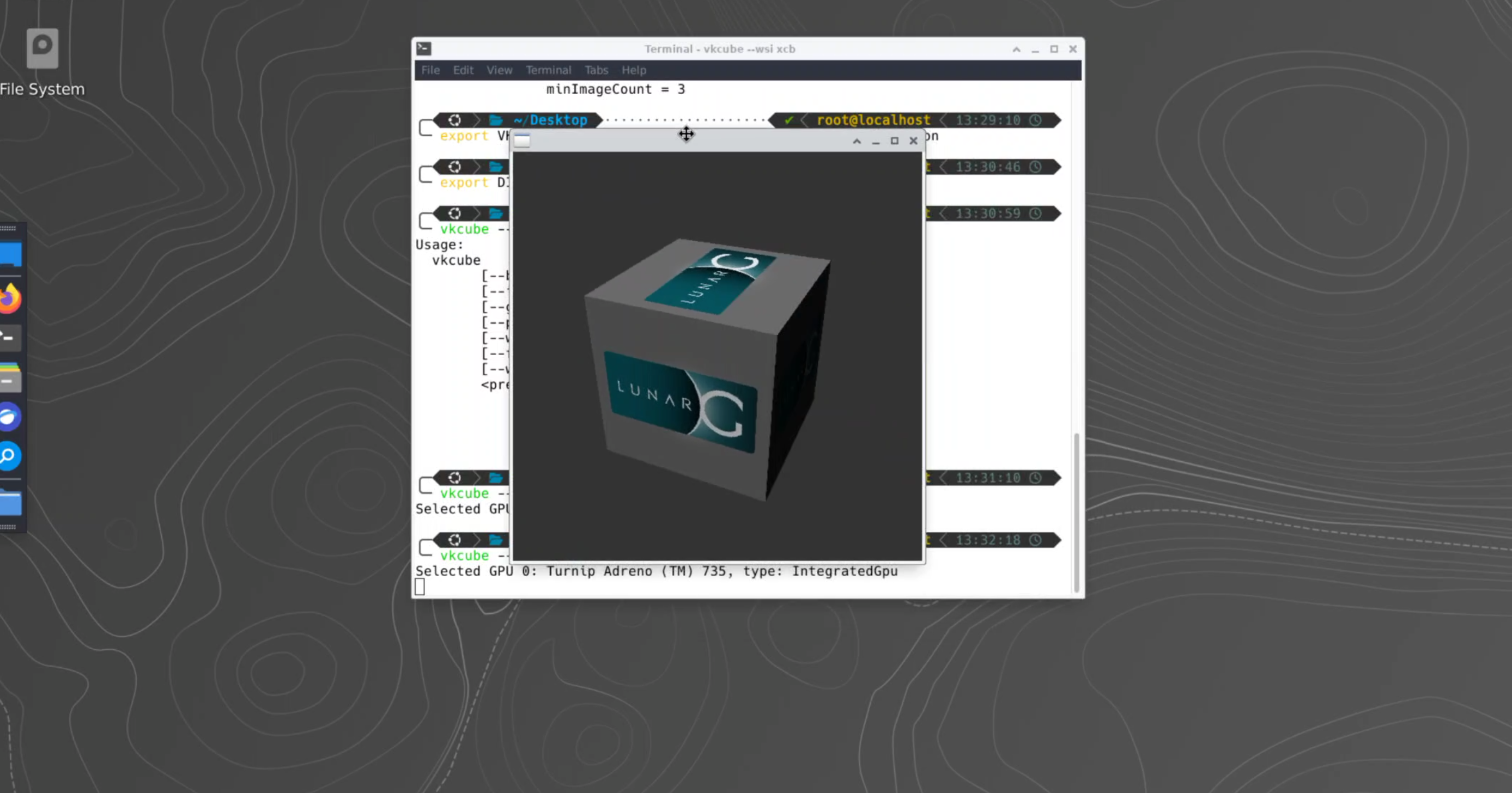 总之,一切顺利的话,运行vkcube --wsi xcb后,你应该可以得到旋转立方。这标志了三阶段的工作顺利结束。